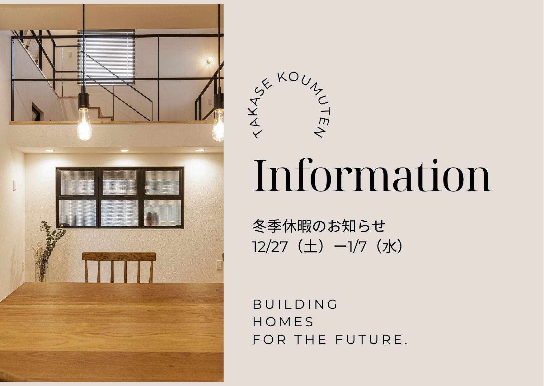 年末年始休暇となります。 休暇中はご迷惑をお掛けいたしますが、カタログのご依頼は休暇中もWEBよりご依頼いただけます。
